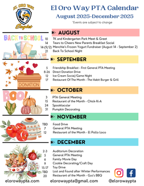 EOW PTA is also hosting the El Oro Way Teachers & Staff Luncheon on December 11th, Thursday @ 12pm.